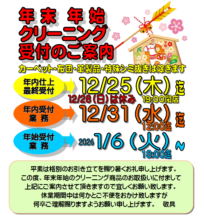 2025年12月年末年始のお知らせ